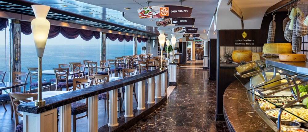 rozmanitý bufet. Na palubě lodí