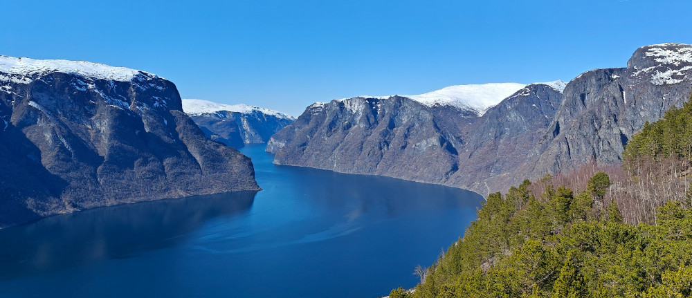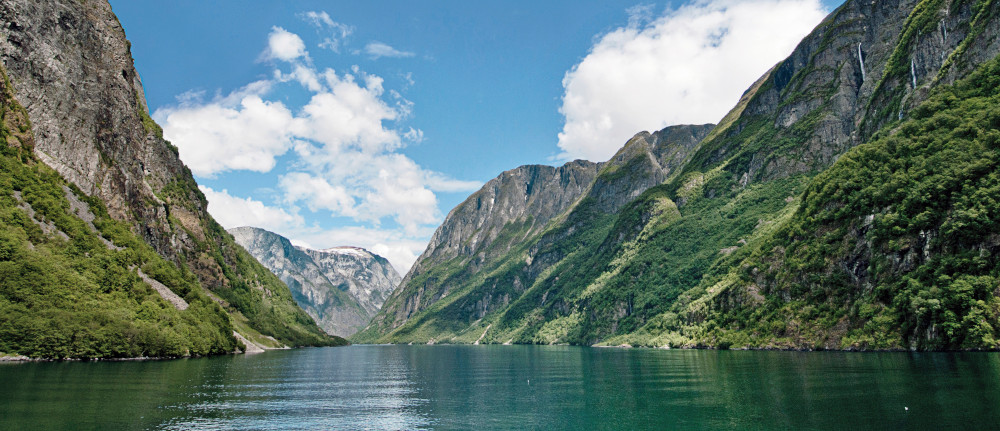 Sognefjordem, který je s délkou přes 204 kilometrů a hloubkou 1 308 metrů