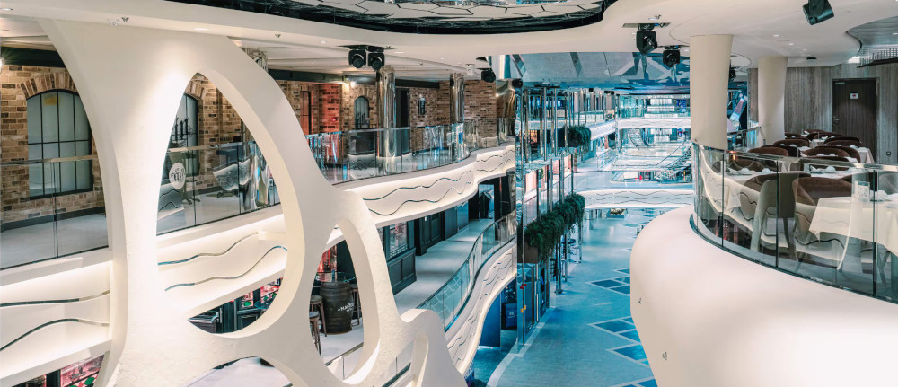 osmé palubě (Miami Deck) a kromě ohromujících LED projekcí nabízí i nádherný výhled, který je rámovaný centrálním spirálovým